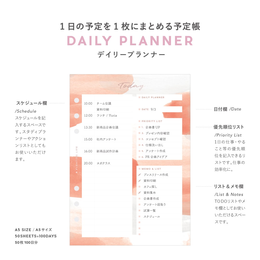 デイリー / A5サイズ / 水彩オレンジ / システム手帳リフィル